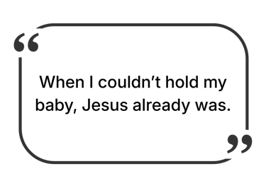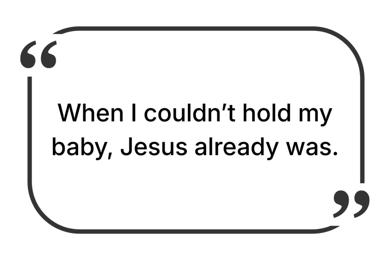“Knowing that my baby never knew my face or felt my arms hold him broke me. But when I remember that the first face he saw was Jesus, and the first arms he felt were His, it brings me comfort.”